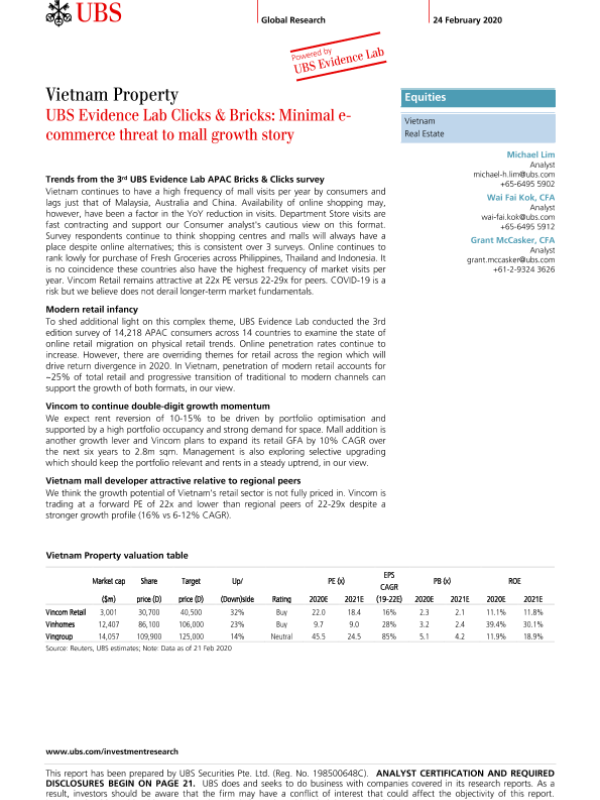 【UBS Securities Pte. Ltd.】【20200224】瑞银-亚太地区-房地产行业-越南房地产:电子商务对线下增长的威胁微乎其微-30页 行业研究