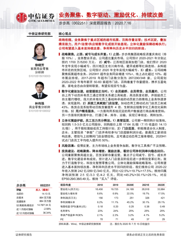 【中信证券】【20200716】20200716-中信证券-步步高-002251.SZ-深度跟踪报告:业务聚焦、数字驱动、激励优化、持续改善-18页 行业研究
