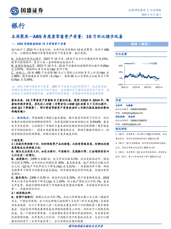 【国盛证券】【20231126】银行本周聚焦:ABS角度看零售资产质量-12页 行业研究