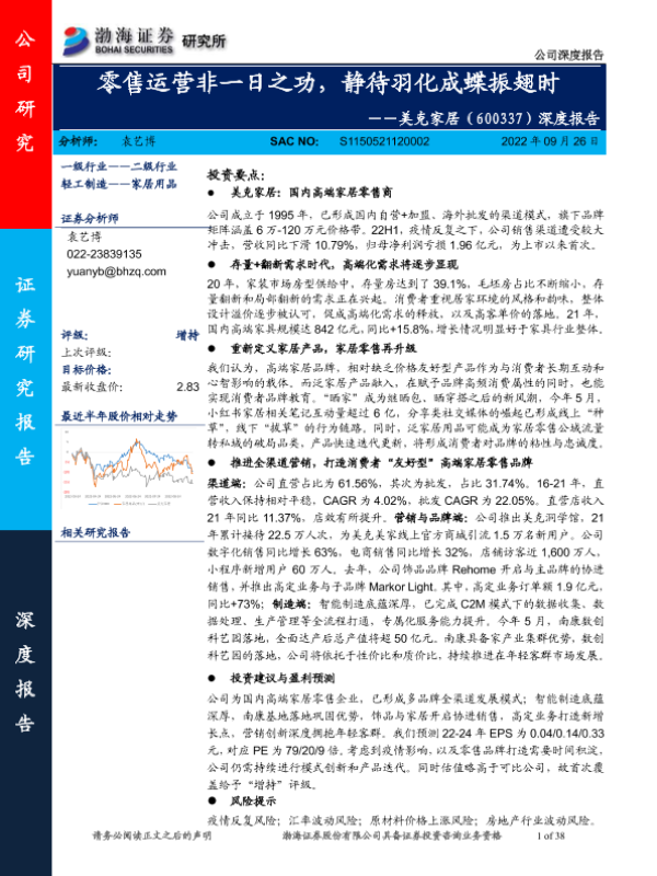 【渤海证券】【20220926】20220926-渤海证券-美克家居-600337.SH-深度报告:零售运营非一日之功,静待羽化成蝶振翅时-38页 行业研究
