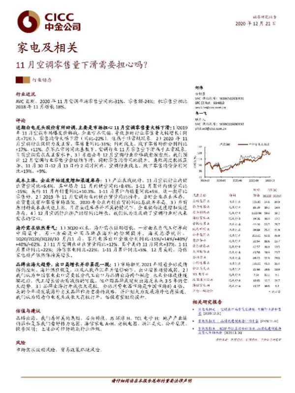 【中金公司】【20201221】家电及相关行业动态:11月空调零售量下滑需要担心吗?-9页 行业研究