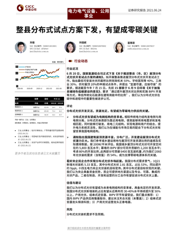 【中金公司】【20210624】整县分布式试点方案下发,有望成零碳关键-6页 行业研究