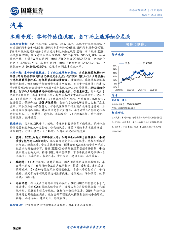 【国盛证券】【20210530】20210530-国盛证券-汽车本周专题:零部件估值梳理,自下而上选择细分龙头-10页 行业研究