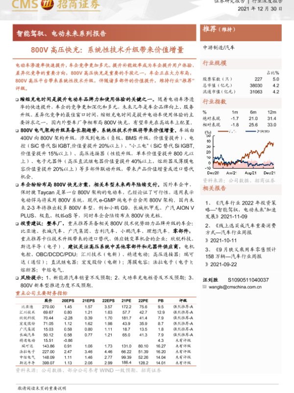【海通证券】【20211230】汽车行业智能驾驭、电动未来系列报告:800V高压快充,系统性技术升级带来价值增量-30页 行业研究