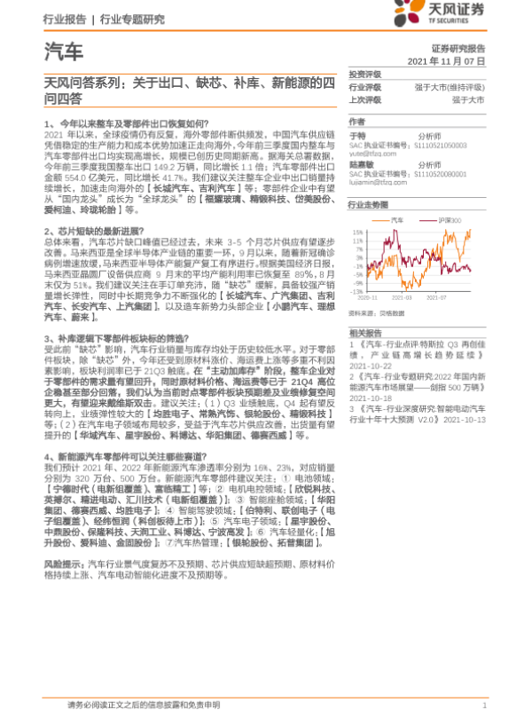 【天风证券】【20211107】天风问答系列:关于出口、缺芯、补库、新能源的四问四答-10页 行业研究