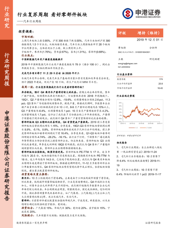 【申港证券】【20191201】20191201-申港证券-汽车行业周报:行业复苏周期 看好零部件板块-25页 行业研究