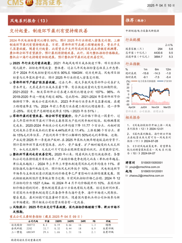 【海通证券】【20250410】电力设备及新能源行业风电系列报告(13) 交付起量,制造环节盈利有望持续改善-14页 行业研究