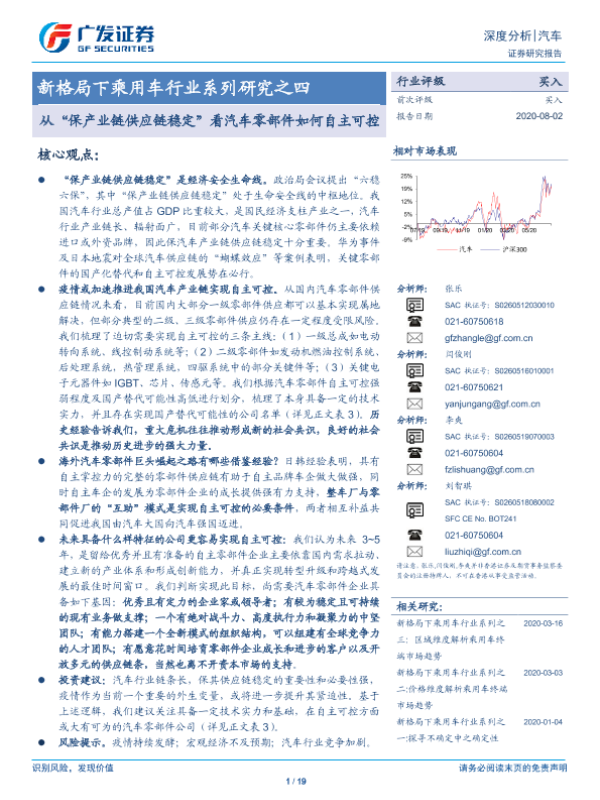 【广发证券】【20200802】新格局下乘用车行业系列研究之四:从“保产业链供应链稳定”看汽车零部件如何自主可控-19页 行业研究