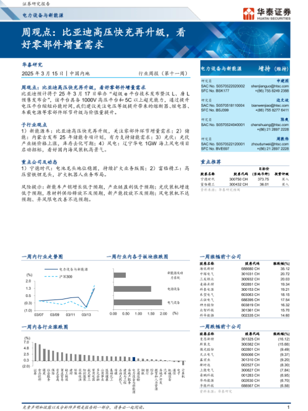 【华泰证券】【20250315】20250315-华泰证券-电力设备与新能源行业周报(第十一周):周观点,比亚迪高压快充再升级,看好零部件增量需求-15页 行业研究