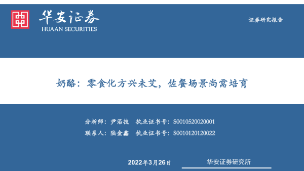 【华安证券】【20220326】食品加工行业:奶酪,零食化方兴未艾,佐餐场景尚需培育-32页 行业研究