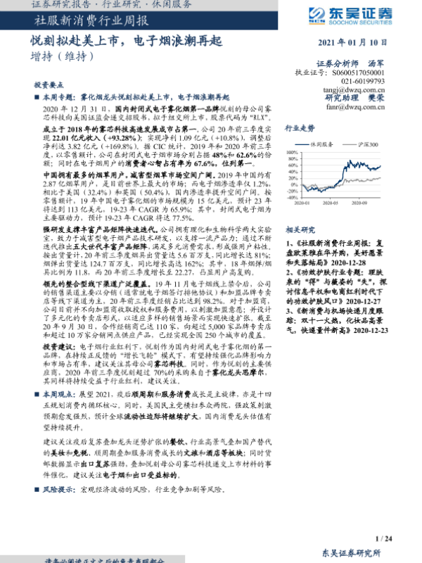 【东吴证券】【20210110】社服新消费行业周报:悦刻拟赴美上市,电子烟浪潮再起-24页 行业研究