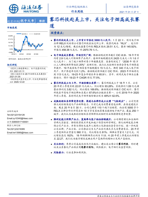 【华泰证券】【20210124】轻工制造行业动态点评:悦刻登陆美股,电子烟再迎催化-5页 行业研究