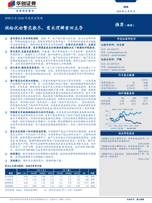 【华创证券】【20191107】钢铁行业2020年度投资策略:供给扰动繁花散尽,需求逻辑重回主导-19页 行业研究