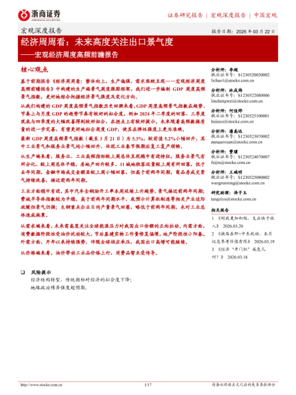 【浙商证券】【202603】经济周周看:未来高度关注出口景气度-17页 证券期货研究报告