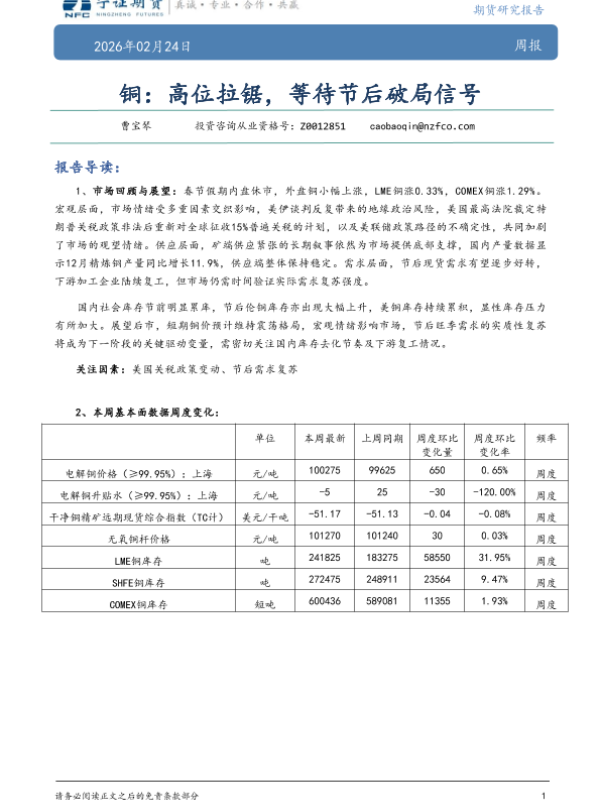 【宁证期货】【202602】铜_高位拉锯_等待节后破局信号-6页 证券期货研究报告