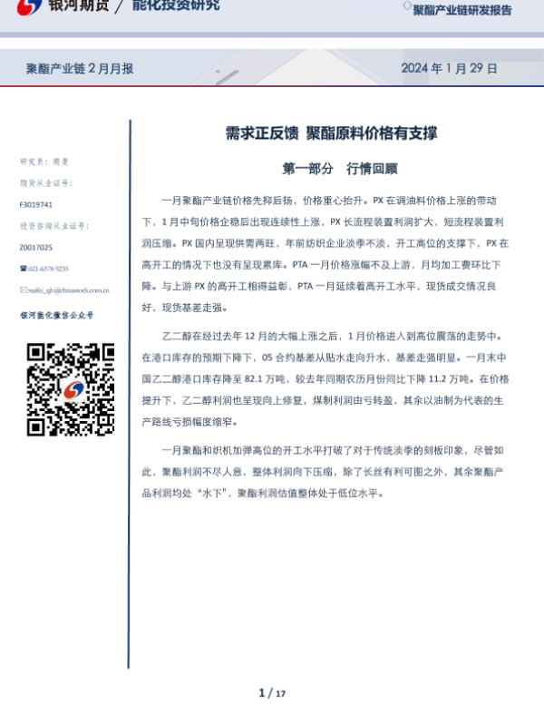 【银河期货】【20240129】聚酯产业链2月月报:需求正反馈 聚酯原料价格有支撑-17页 行业研究