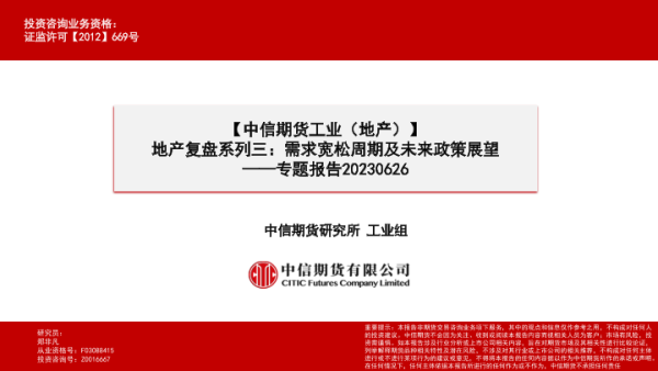 【中信期货】【20230626】工业(地产)专题报告:地产复盘系列三,需求宽松周期及未来政策展望-26页 行业研究
