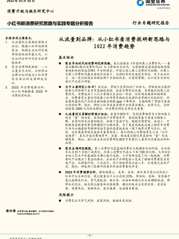 【国金证券】【20220303】消费行业小红书新消费研究思路与实践专题分析报告:从流量到品牌,从小红书看消费投研新思路与2022年消费趋势-35页 行业研究