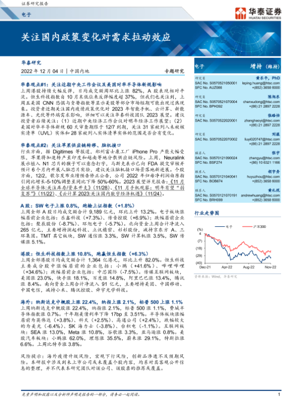 【华泰证券】【20221204】电子专题研究:关注国内政策变化对需求拉动效应-25页 行业研究