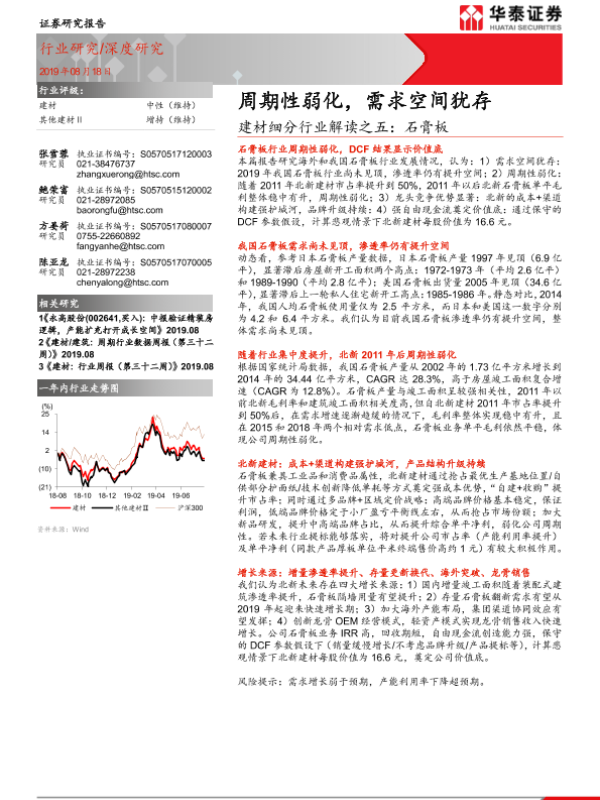 【华泰证券】【20190818】建材细分行业解读之五:石膏板:周期性弱化,需求空间犹存-35页 行业研究