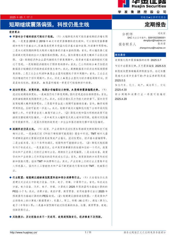 【华金证券】【20250517】定期报告:短期继续震荡偏强,科技仍是主线-11页 证券期货研究报告