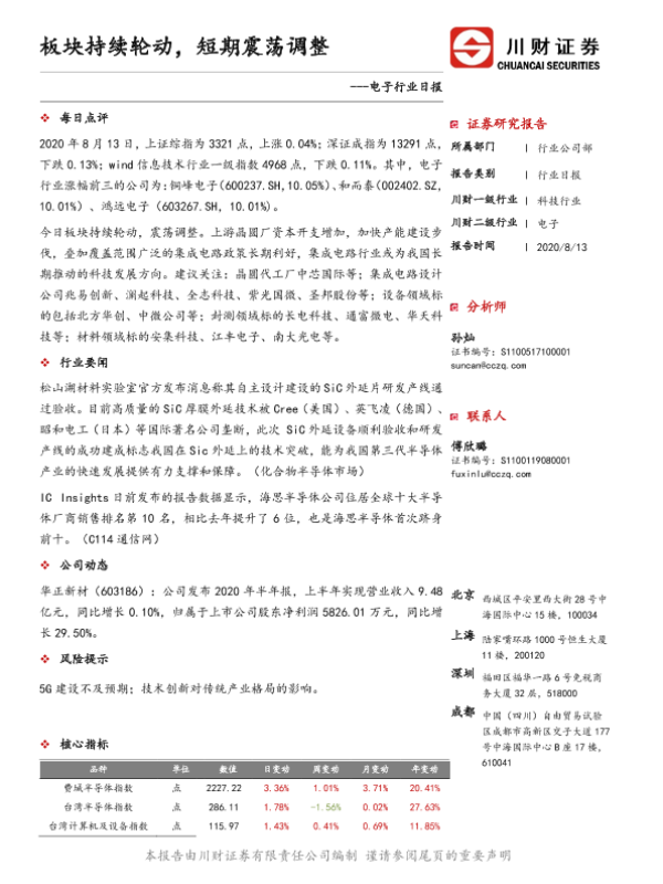 【川财证券】【20200813】电子行业日报:板块持续轮动,短期震荡调整-4页 证券期货研究报告