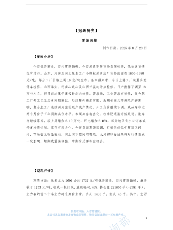 【冠通期货】【20250828】震荡调整-5页 证券期货研究报告