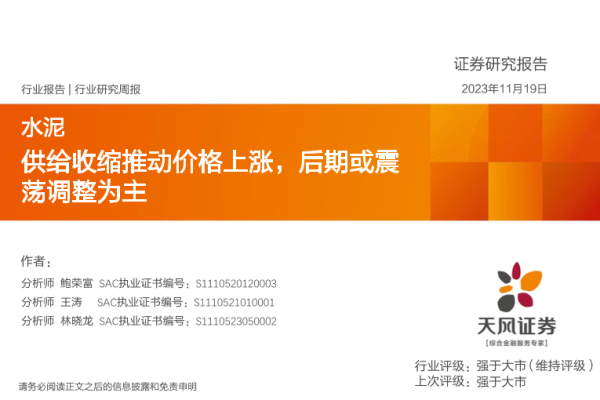 【天风证券】【20231119】水泥行业研究周报:供给收缩推动价格上涨,后期或震荡调整为主-21页 行业研究
