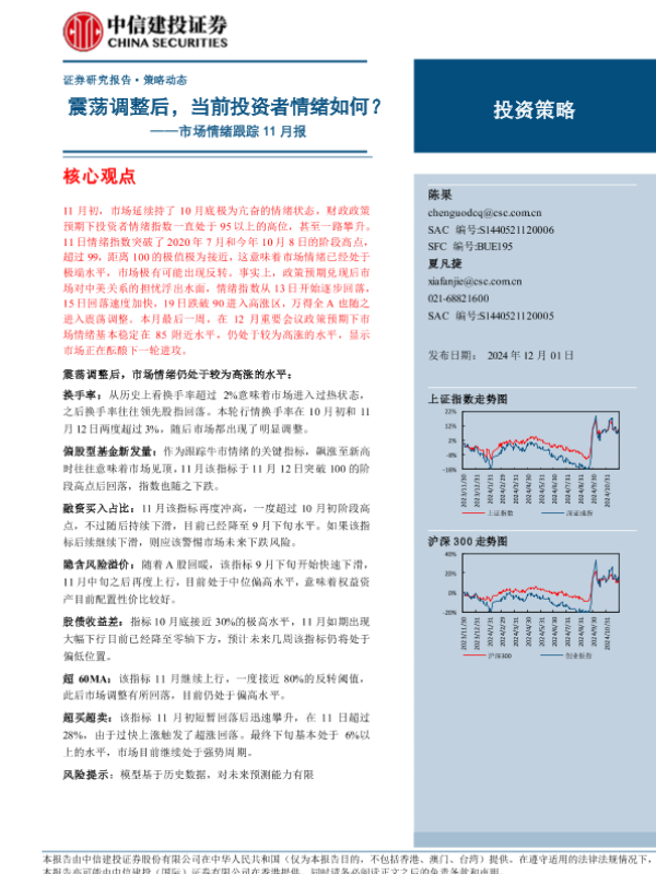 【中信建投证券】【20241201】市场情绪跟踪11月报:震荡调整后,当前投资者情绪如何?-10页 行业研究