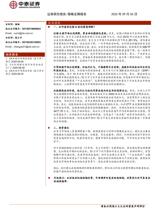 【中泰证券】【202509】如何看待近期A股的震荡调整?-11页 证券期货研究报告