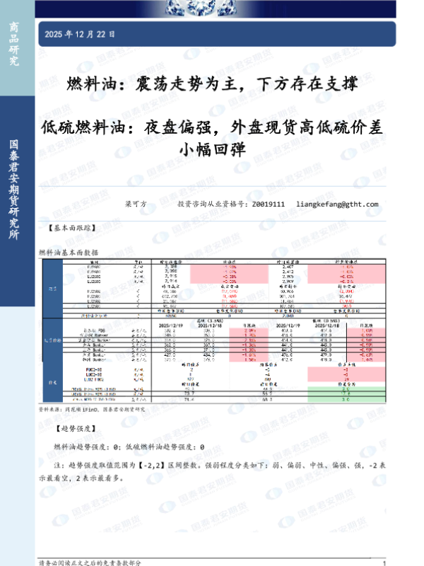 【国泰君安期货】【202512】燃料油:震荡走势为主,下方存在支撑-2页 证券期货研究报告