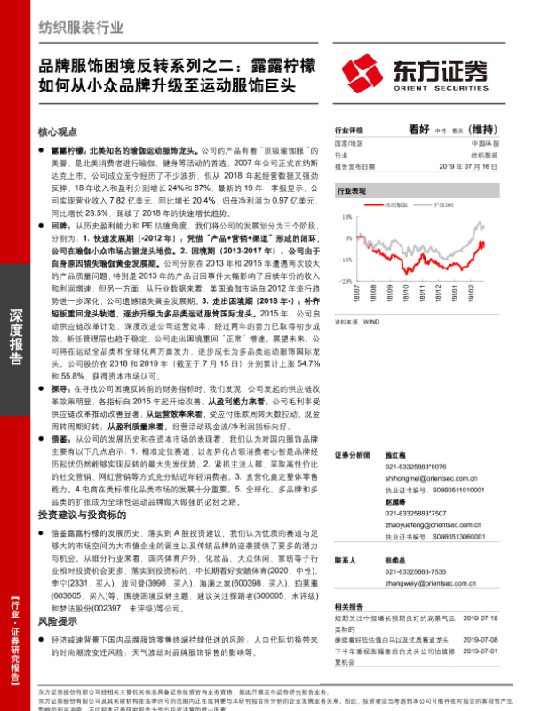 【东方证券】【20190716】纺织服装行业:品牌服饰困境反转系列之二:露露柠檬如何从小众品牌升级至运动服饰巨头-29页 证券期货研究报告