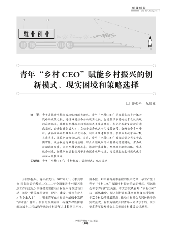 【中国青年研究】【202302】青年“乡村CEO”赋能乡村振兴的创新模式、现实困境和策略选择-9页 行业研究