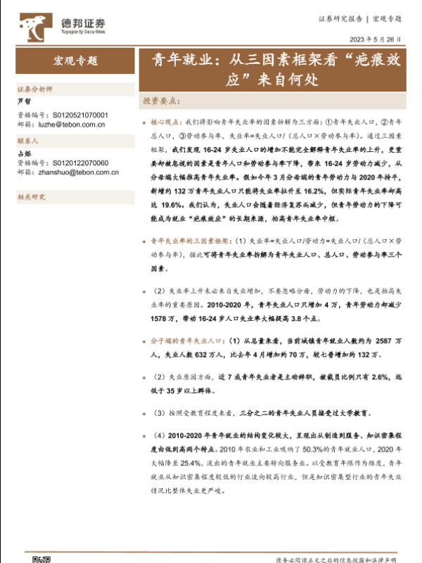 【德邦证券】【20230526】青年就业:从三因素框架看“疤痕效应”来自何处-19页 行业研究