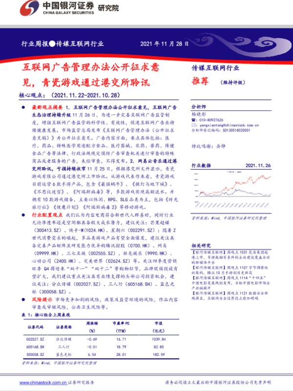 【银河证券】【20211128】互联网广告管理办法公开征求意见,青瓷游戏通过港交所聆讯-34页 行业研究