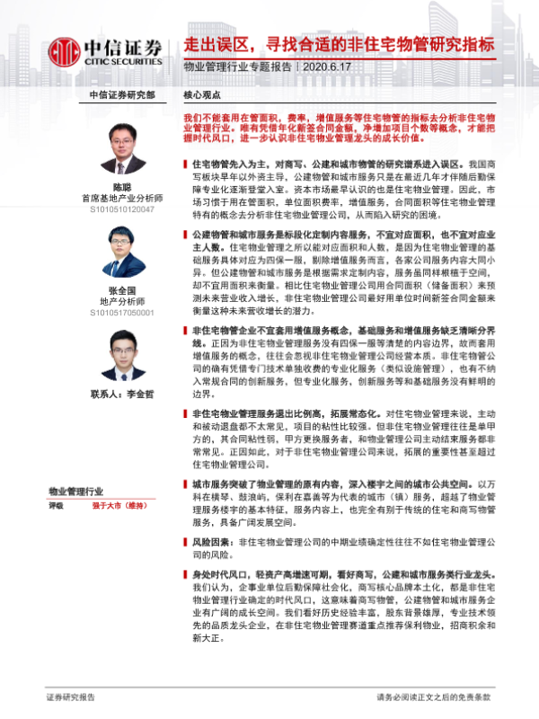 【中信证券】【20200617】走出误区,寻找合适的非住宅物管研究指标-16页 行业研究