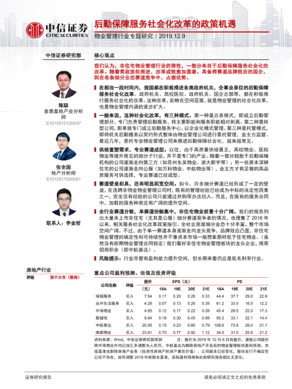 【中信证券】【20191209】物业管理行业专题研究:后勤保障服务社会化改革的政策机遇-7页 行业研究