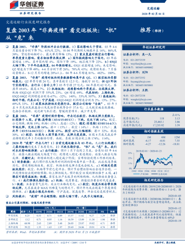 【华创证券】【20200201】复盘2003年“非典疫情”看交运板块:“机”从“危”来-26页 行业研究