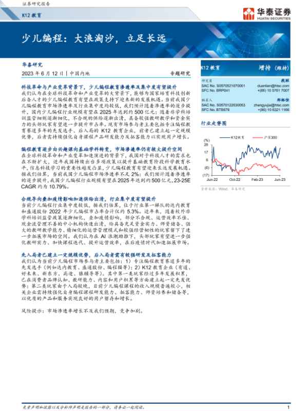 【华泰证券】【20230612】K12教育:少儿编程,大浪淘沙,立足长远-14页 行业研究