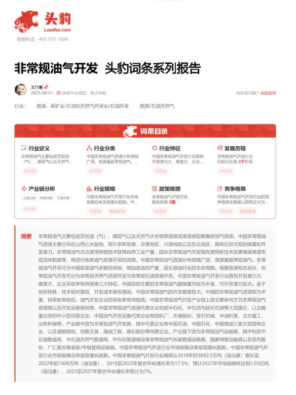 【头豹研究院】【20230801】20230927-头豹研究院-非常规油气开发 头豹词条报告系列-18页 行业研究