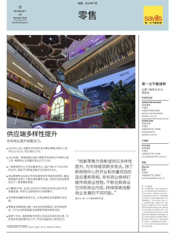 【第一太平戴维斯】【202407】成都零售 2024年第二季度-2页 行业研究