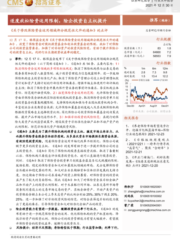 【海通证券】【20211230】关于修改保险资金运用领域部分规范性文件的通知的点评-2页 证券期货研究报告