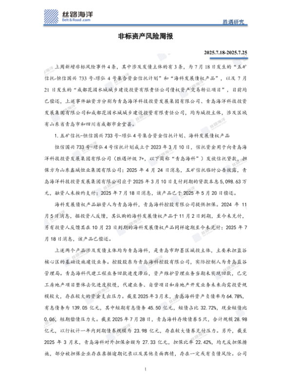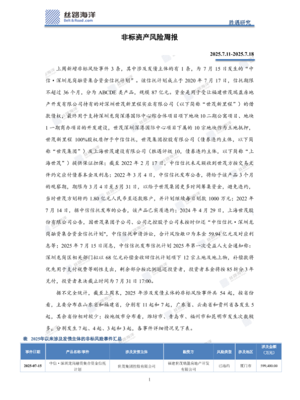 【丝路海洋(北京)科技有限公司】【20250721】非标资产风险周报-5页 行业研究