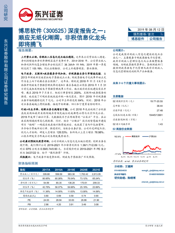 【东兴证券】【20190812】博思软件(300525)深度报告之一:顺应无纸化刚需,非税信息化龙头即将腾飞-31页 行业研究
