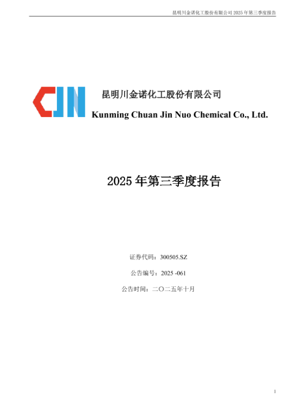 【昆明川金诺化工股份有限公司】【202510】2025年第三季度报告-16页 财报