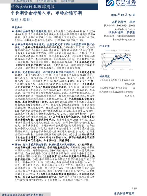 【东吴证券】【202603】非银金融行业跟踪周报·中长期资金持续入市,市场企稳可期-18页 证券期货研究报告