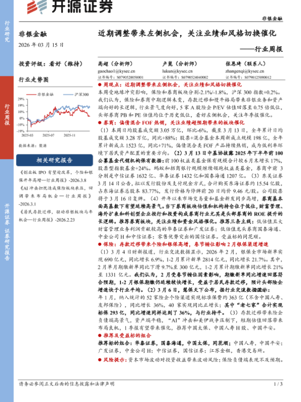 【开源证券】【202603】非银金融行业周报:低估值有望带来抗跌特征,关注业绩和风格切换催化-3页 证券期货研究报告
