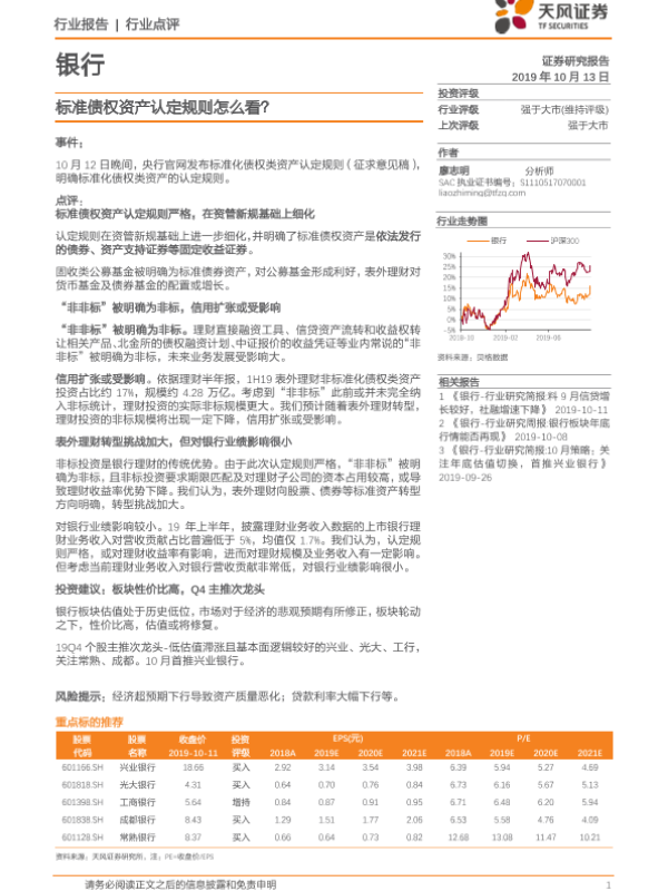 【天风证券】【20191013】银行行业点评:标准债权资产认定规则怎么看?-5页 行业研究
