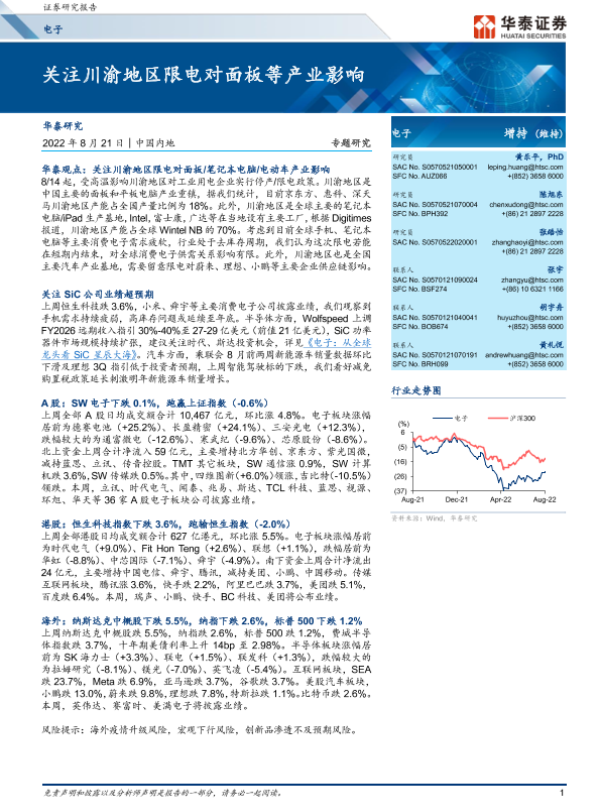 【华泰证券】【20220821】关注川渝地区限电对面板等产业影响-25页 行业研究