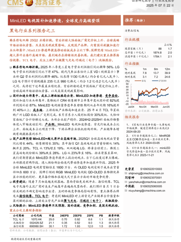 【海通证券】【20250722】黑电行业系列报告之三:MiniLED电视国补加速渗透,全球发力高端登顶-17页 行业研究